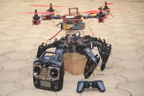 Unmanned aerial navigation and terrestrial vehicle developed with aerial and terrestrial surveillance vehicle. A prototype was developed of the hybrid version.
